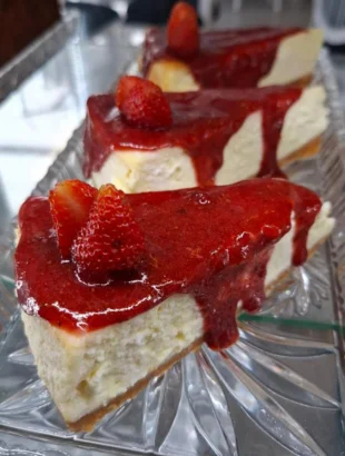 Com sua base crocante, recheio cremoso e cobertura de morangos frescos, ele conquista corações e transforma qualquer momento em magia.